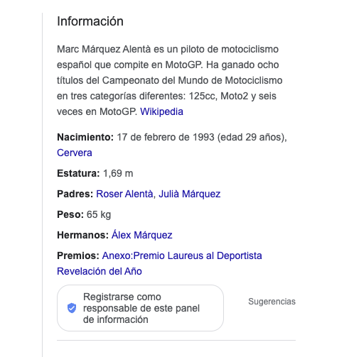 Esta funcionalidad nos proporciona una información de base relacionada con la palabra clave que nuestro cliente está utilizando en su búsqueda. Si por ejemplo está buscando a un deportista, la funcionalidad nos ofrecerá su nombre completo, edad, estatura, etc… También se utiliza mucho para datos de países y ciudades.