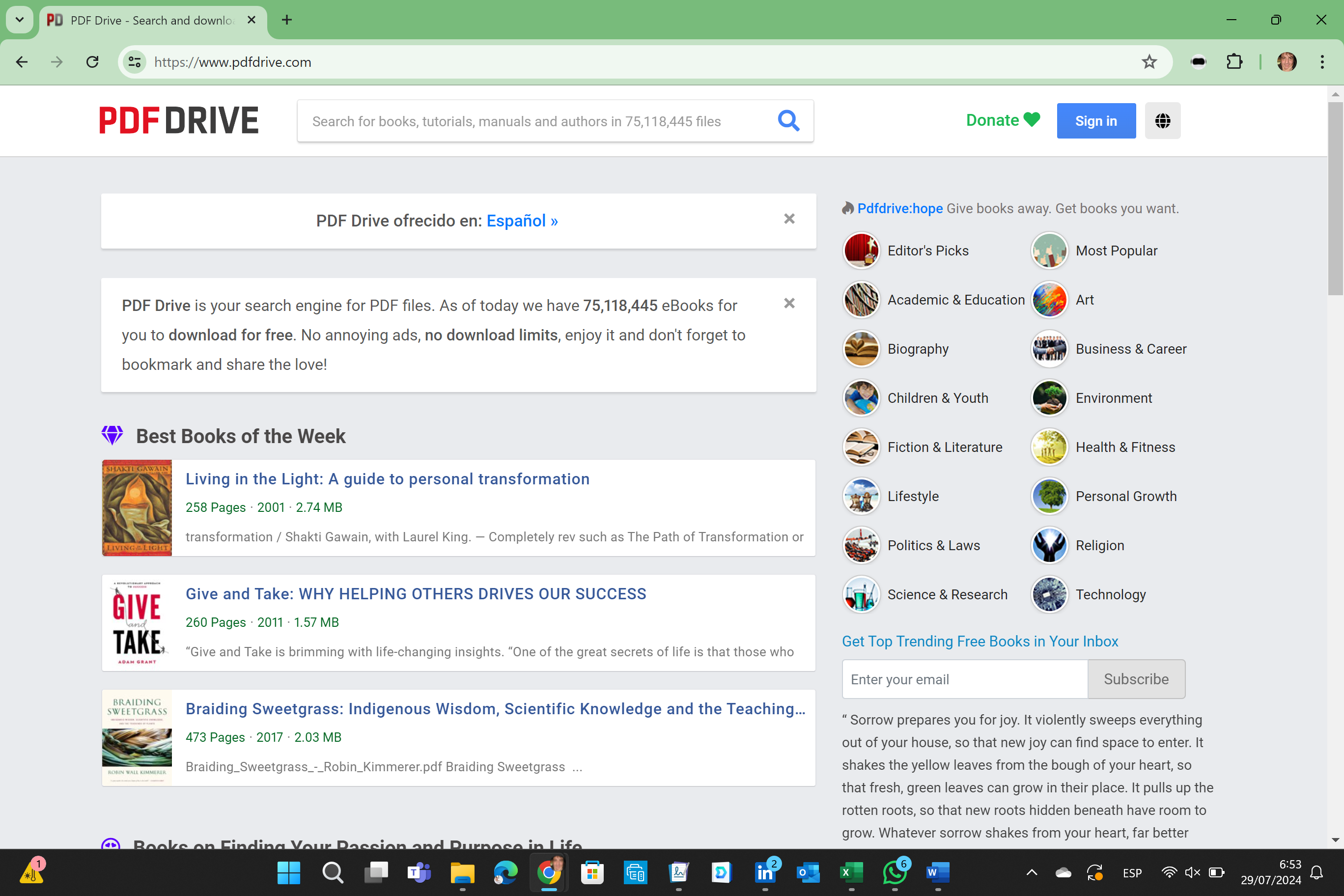 Amplia Base de Datos: Al momento de la redacción del artículo, PDF Drive cuenta con aproximadamente 74,9 millones de archivos PDF, incluyendo una gran variedad de libros y otros documentos.