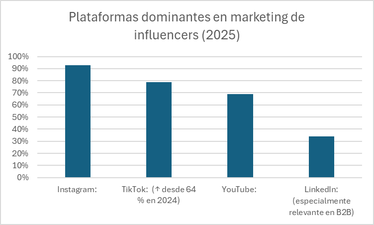 Además, el 39 % de marcas y agencias ya utiliza plataformas especializadas de influencer marketing, especialmente para: