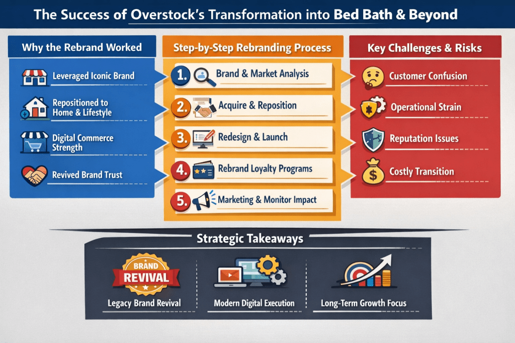 Here’s a synoptical table (side-by-side comparison) summarizing Overstock’s rebrand to Bed Bath & Beyond: